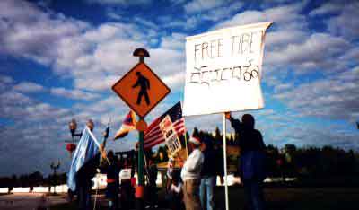 Protesters at the Main Gate of Florida Splendid China during 12/22/96 demonstration.(Another view)