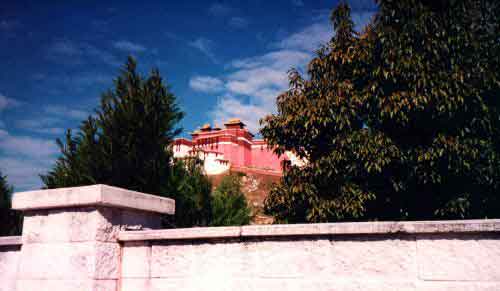 A shot of the Potala palace through the thickening trees.