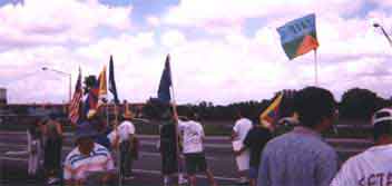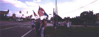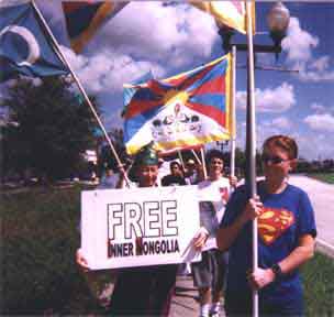 After the Joint Statement (see below) was read by Ms. Yargui of the Inner Mongolian People's Party to the cheers of the 35 or more people assembled, the demonstrators started the walk to the corner of US-192 and Formosa Gardens Blvd, to catch the passing cars just two miles from DisneyWorld.