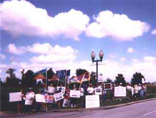As on many occasions before, the members of Citizens Against Communist Chinese Propaganda gathered in the Formosa Gardens Shopping Center parking lot to begin the joyful march to the main gate of the Florida Splendid China theme park and another protest demonstration.