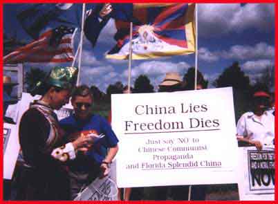 The next demonstration will be held on the 18th of December 1999 to commemorate the 3rd anniversary of the jailing of Mr. Hadaa, a Inner Mongolian that dared to open an unsanctioned book-store and the sixth anniversary of the Grand Opening of Florida Splendid China. This will be the thirty-second demonstration to protest against the propaganda theme park known as Florida Splendid China.