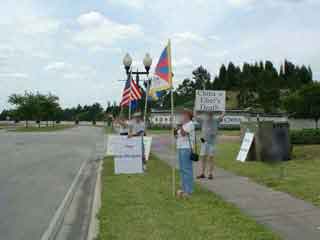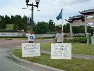 Those attending stood with their signs and flags for two hours beginning at noon on Saturday April 28, 2001. Some of the signs read "Free Inner Mongolia", "China Lies - Freedom Dies", "One Taiwan - One China", "China=Tibet's Death". The flags of the countries of the United States, Tibet, Eastern Turkestan and the flag of the Inner Mongolian People's Party were flown.
