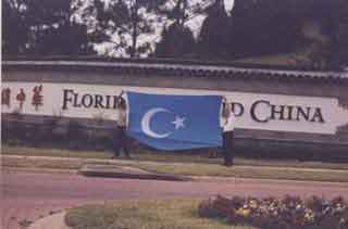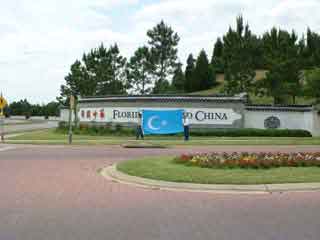 Large flag of Eastern Turkestan in front of Florida Splendid China sign*