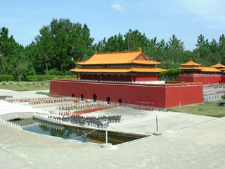 ![]() Falun Gong exercises In front of the TianAnMen Square exhibit at Florida Splendid China. |